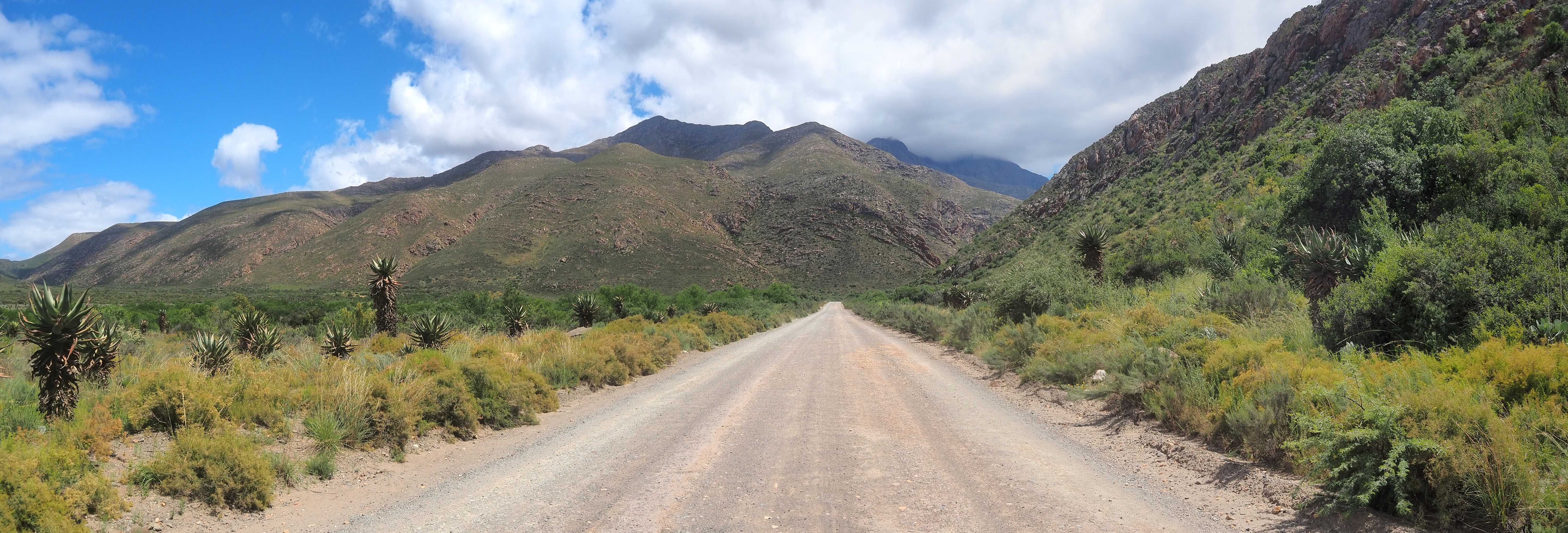 Nous sommes dans le "Karoo", grande zone semi-désertique du sud du pays. Les montagnes du Swartberg coupe en deux ce semi-désert, le grand Karoo au nord et le petit Karoo au sud.