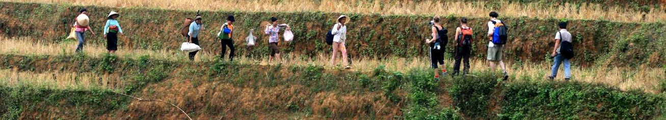 Ces décorations rouges et bleus, ainsi que ces pierres sont en fait des tombeaux. Selon certaines coutumes locales, les vietnamiens peuvent laisser leurs défunts n'importe où dans la nature. Au bout de quelques années, les corps sont repris pour être mis dans les cimetières.