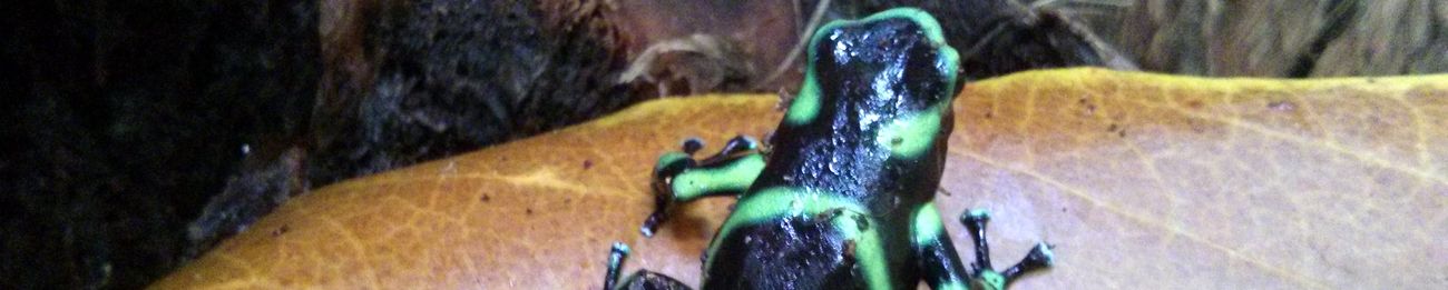 Ses autres copines sont là aussi. La dendrobate verte auratus et grenouille blue jean oophaga pumilio.