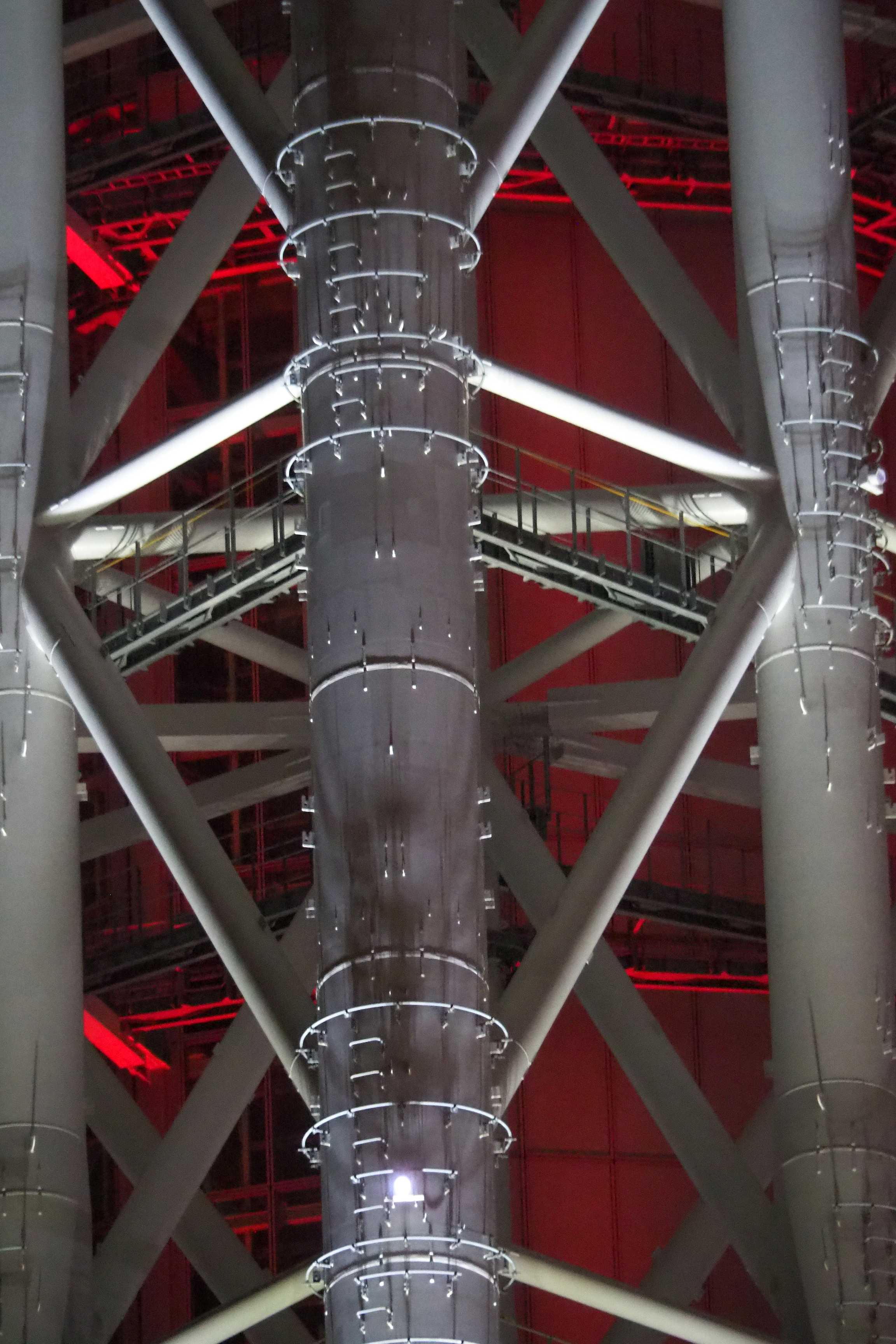 Nos quedan unos metros por subir para alcanzar los 450 metros de la plataforma más alta. Reconocemos su forma de espiral ascendente que se envuelve alrededor de la antena.