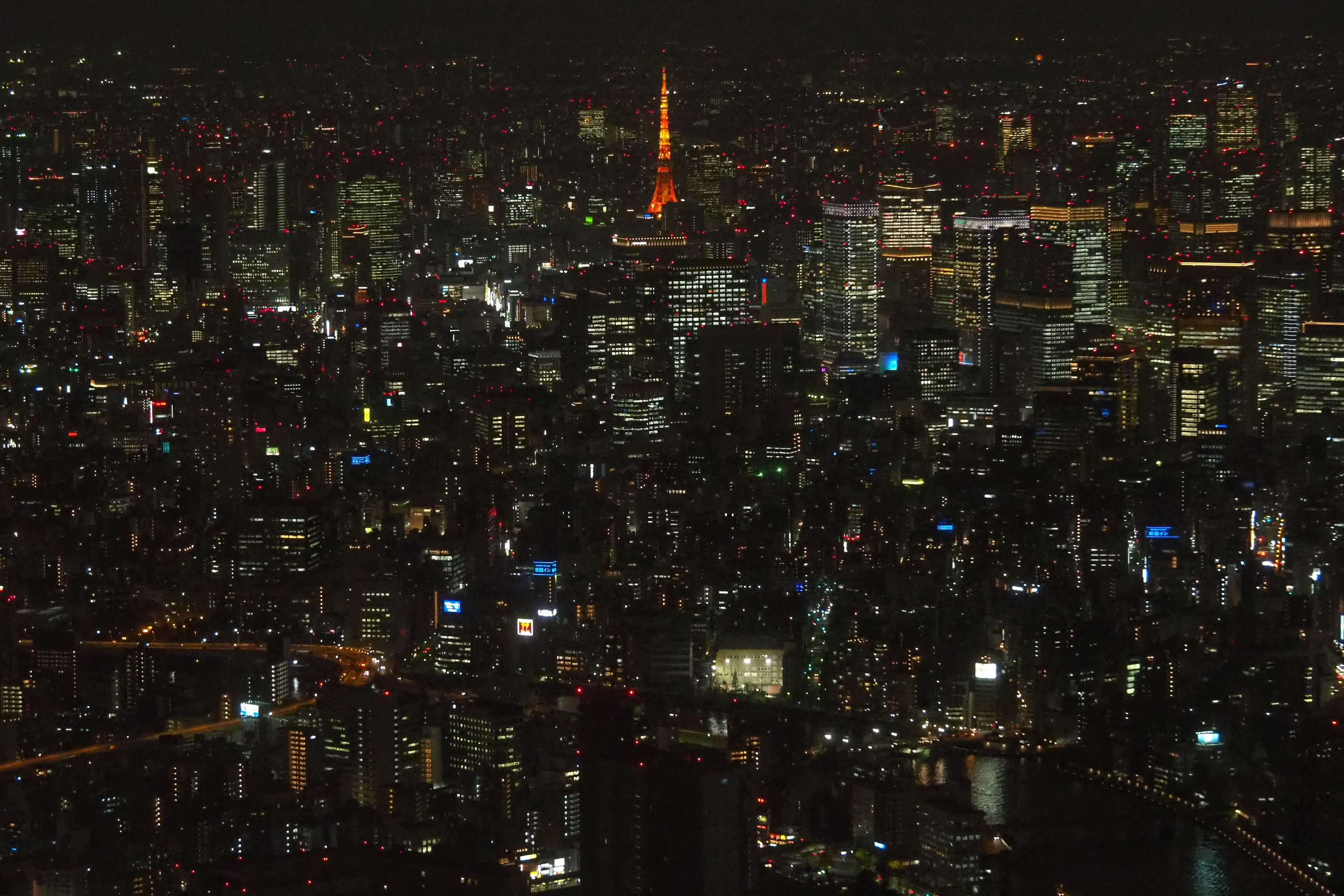 Gracias a sus proyectores, la Torre de Tokio sigue siendo el punto de referencia más fiable en nuestro panorama. Entre las dos torres, 8 kilómetros de edificios.