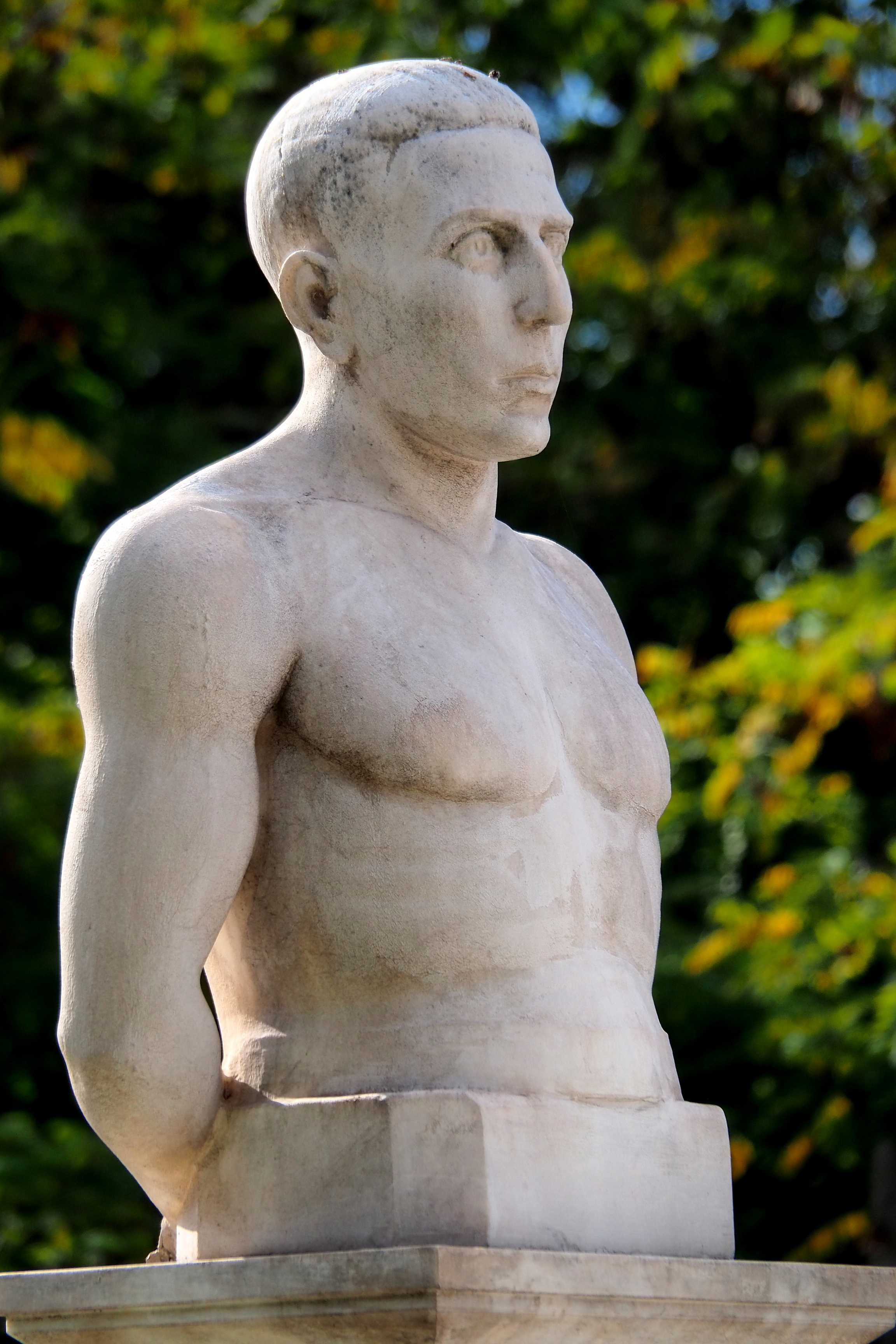 Derrière, la tombe du soldat inconnu. Le monument représente un fantassin de la Grèce antique expirant son dernier souffle.