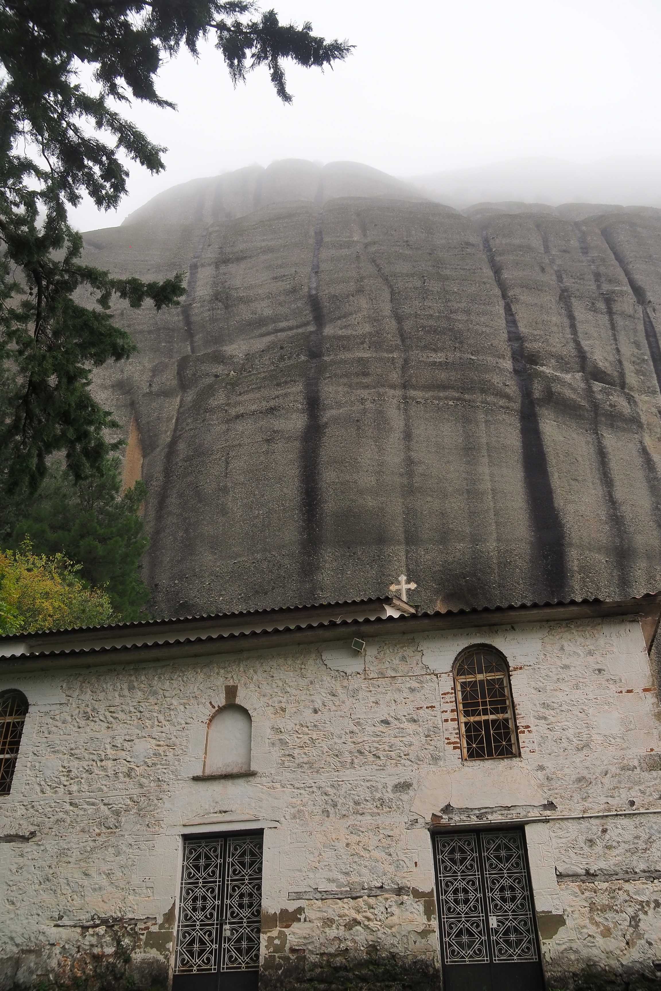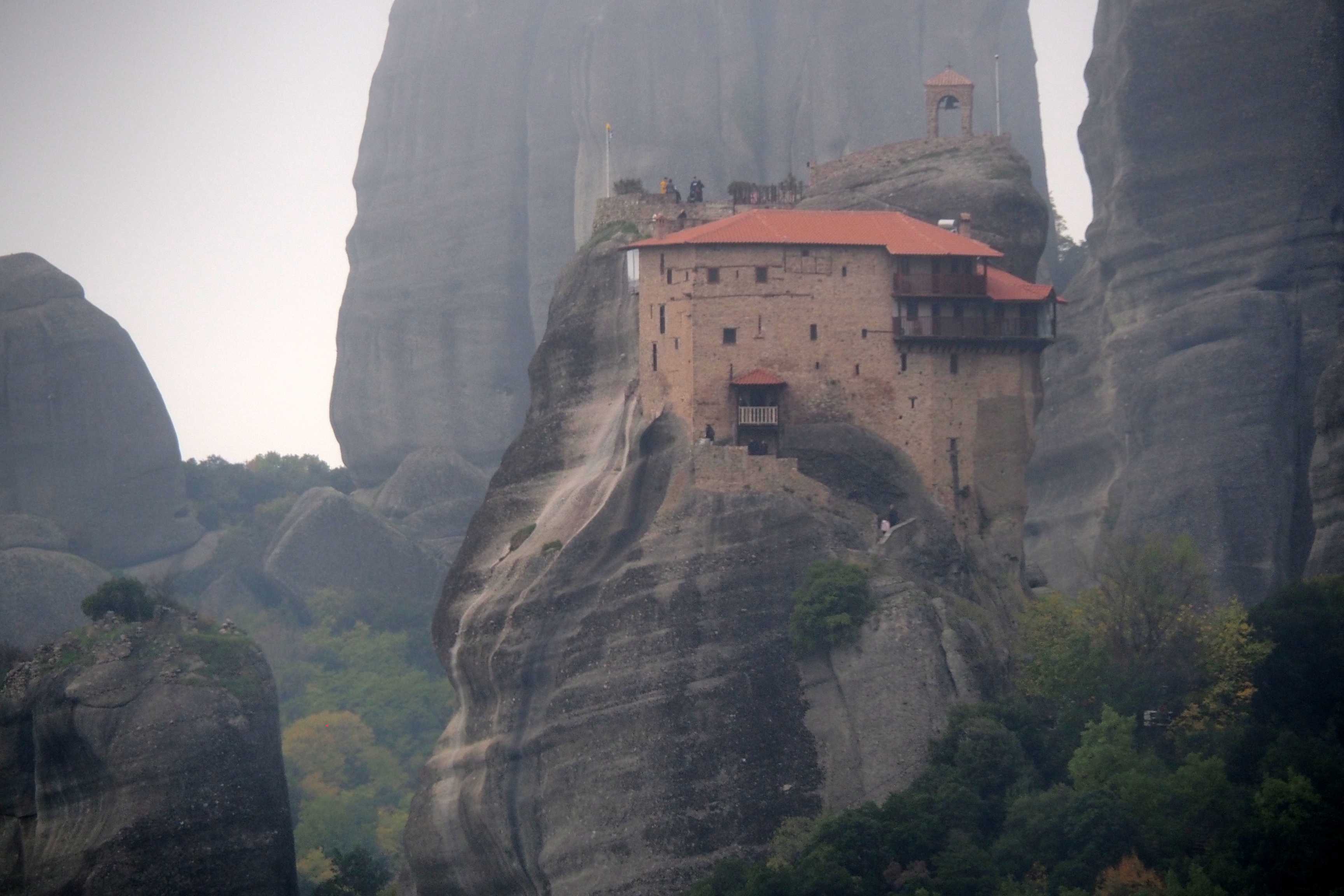 Nous croisons les doigts pour que le soleil fasse son apparition demain, mais en attendant, nous décidons d'aller parcourir les six monastères suspendus, non pas aux pitons pour aujourd'hui mais aux nuages... Voici déjà, celui de Roussanou.