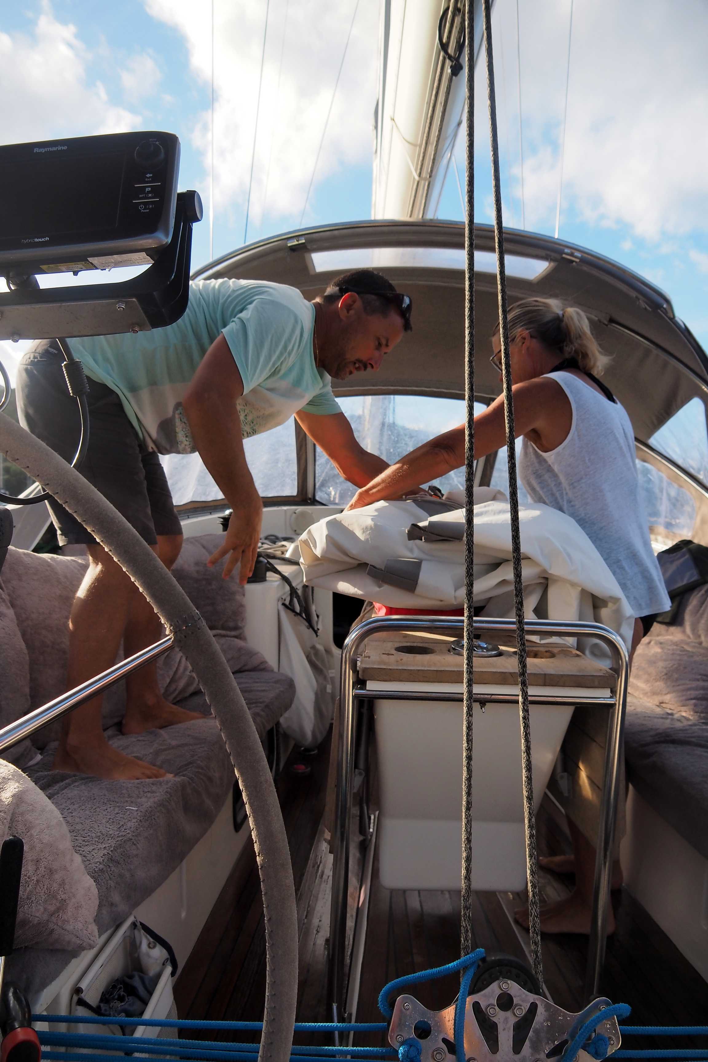 Et c'est partie ! Jules est à la barre, et le grand large nous ouvre les bras. Objectif de la journée, quitter la France et rejoindre Sainte-Lucie, colonie britannique qui a gagné son indépendance en 1979.