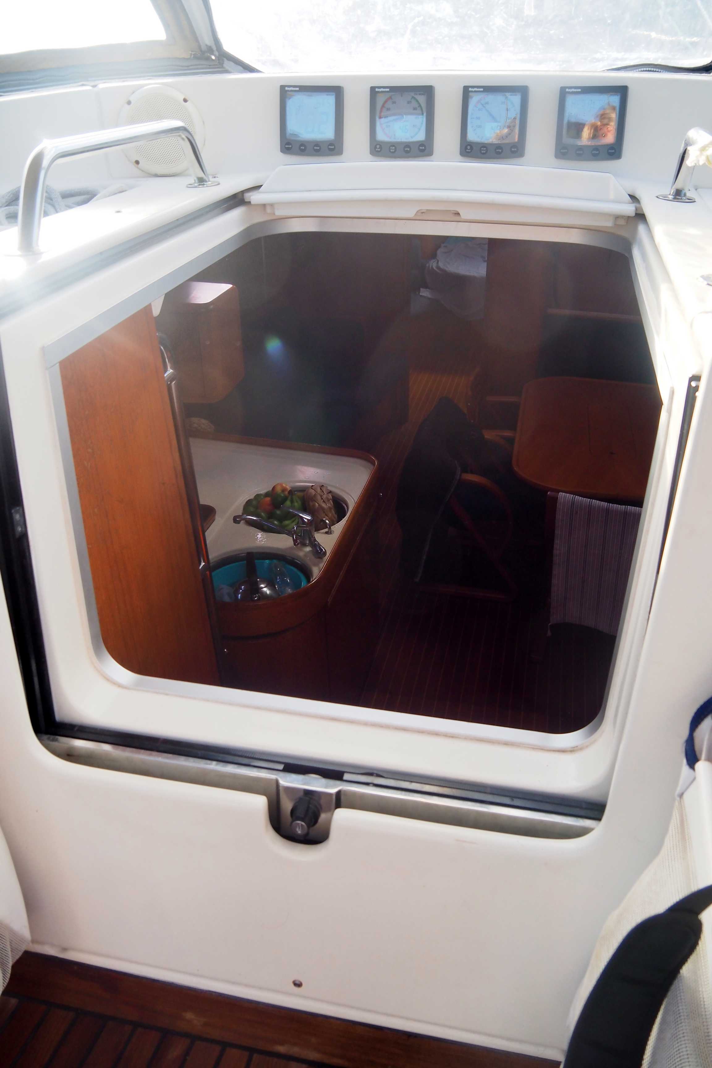 Petite visite du propriétaire en attendant. La cabine centrale desservant les 3 chambres. On y trouve la cuisine et le salon.