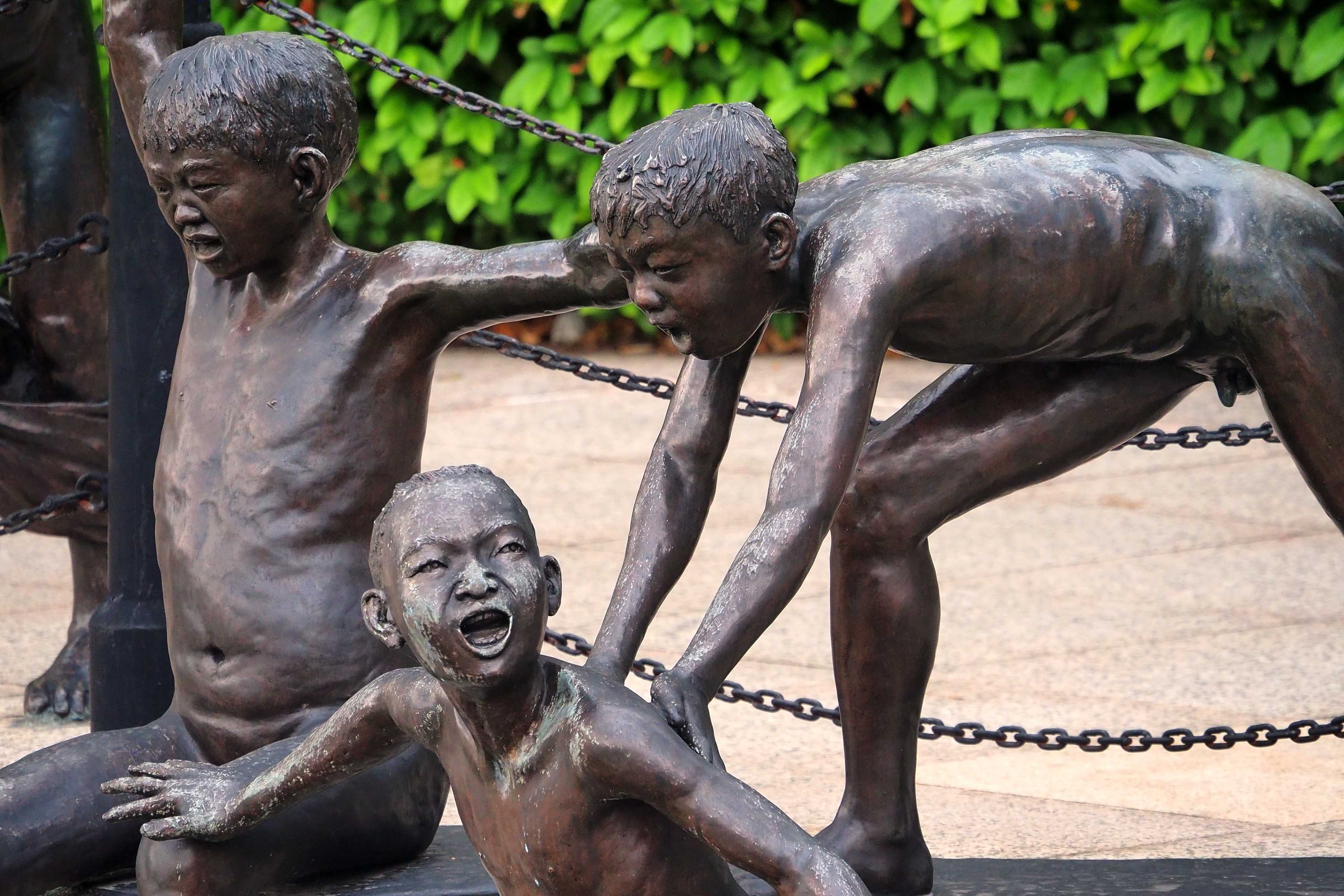Avec "The First Generation", l'artiste Chong Fah Cheong évoque les jeux des enfants des premiers immigrants qui se baignaient dans le cours d'eau.