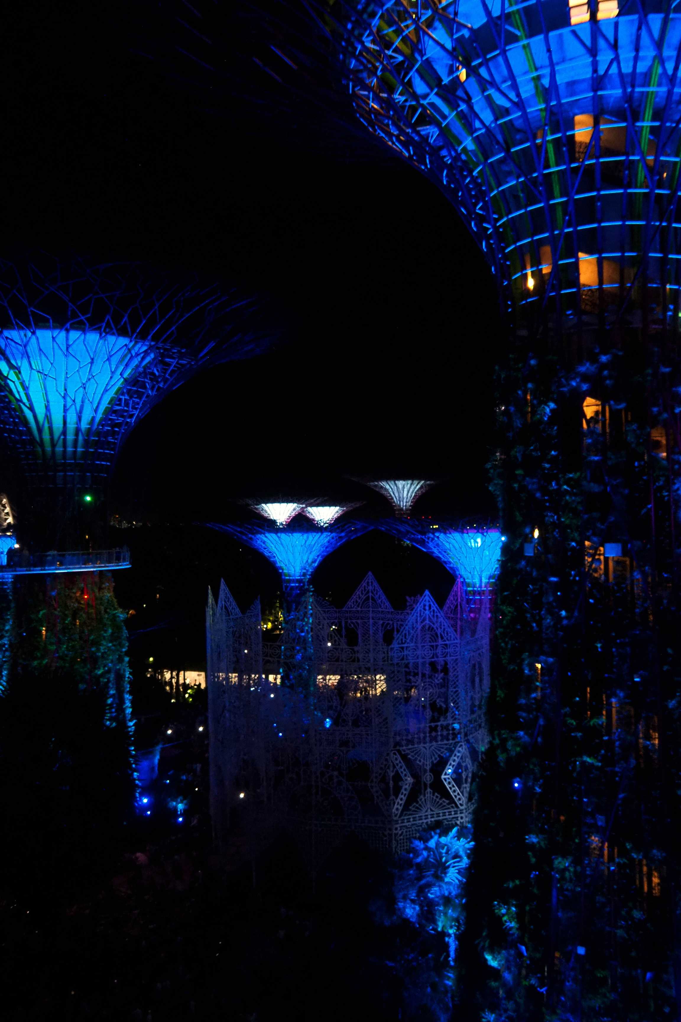 La nuit commence à tomber, les SuperTrees s'illuminent doucement, en même temps que le voisin SkyBridge.