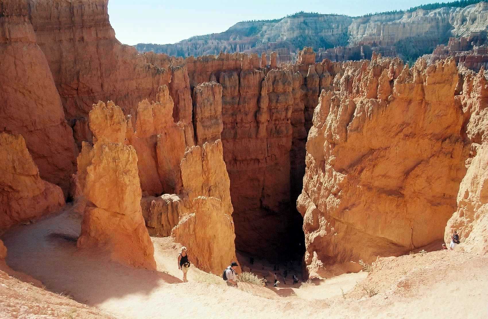 Début de la randonnée (Navajo loop et Queens Garden Trail, 4,6 km) qui va nous emmener tout en bas au milieu des aiguilles rocheuses