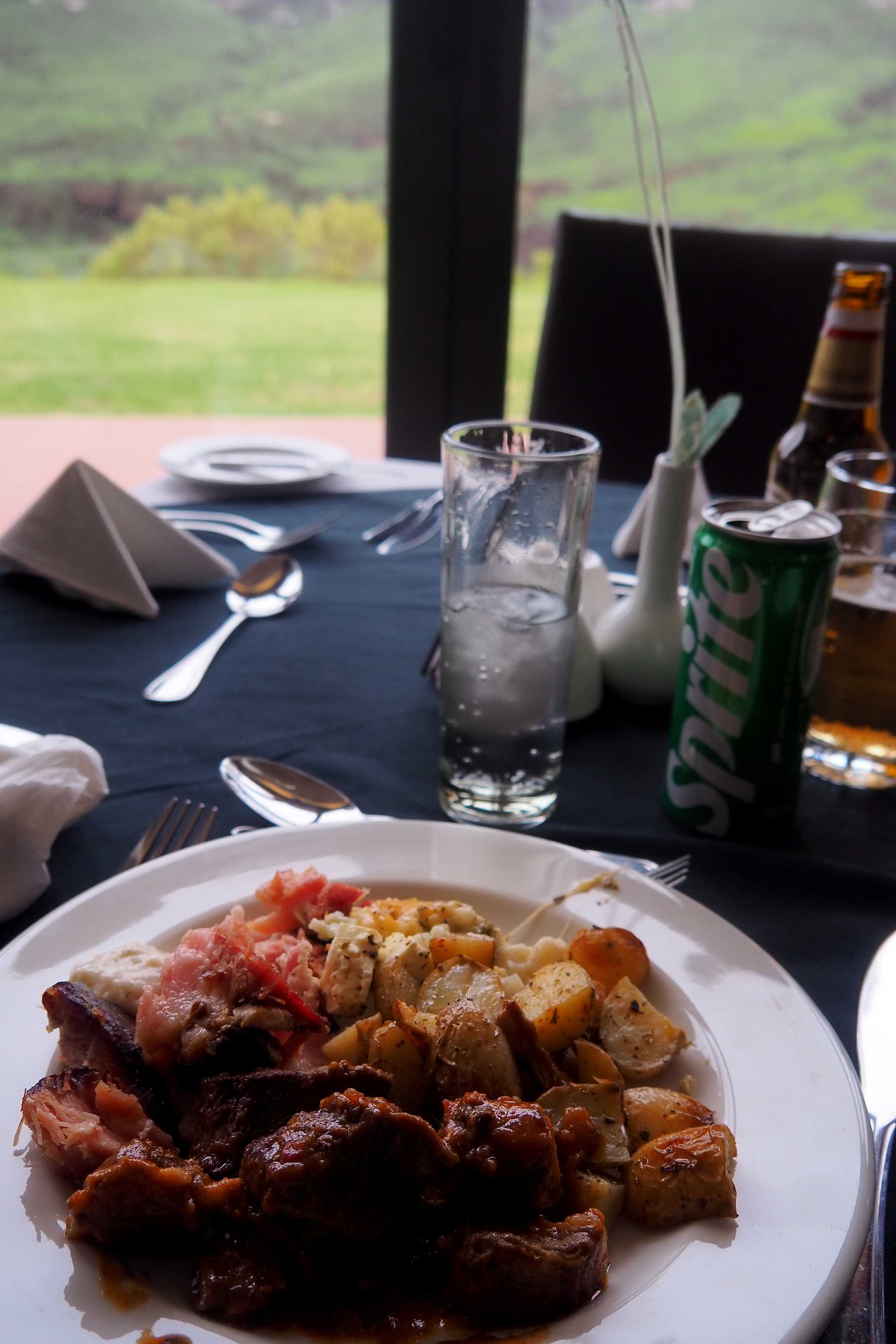 Déjeuner sur le pouce au restaurant Tom's place, après la ville de Bloemfontein.