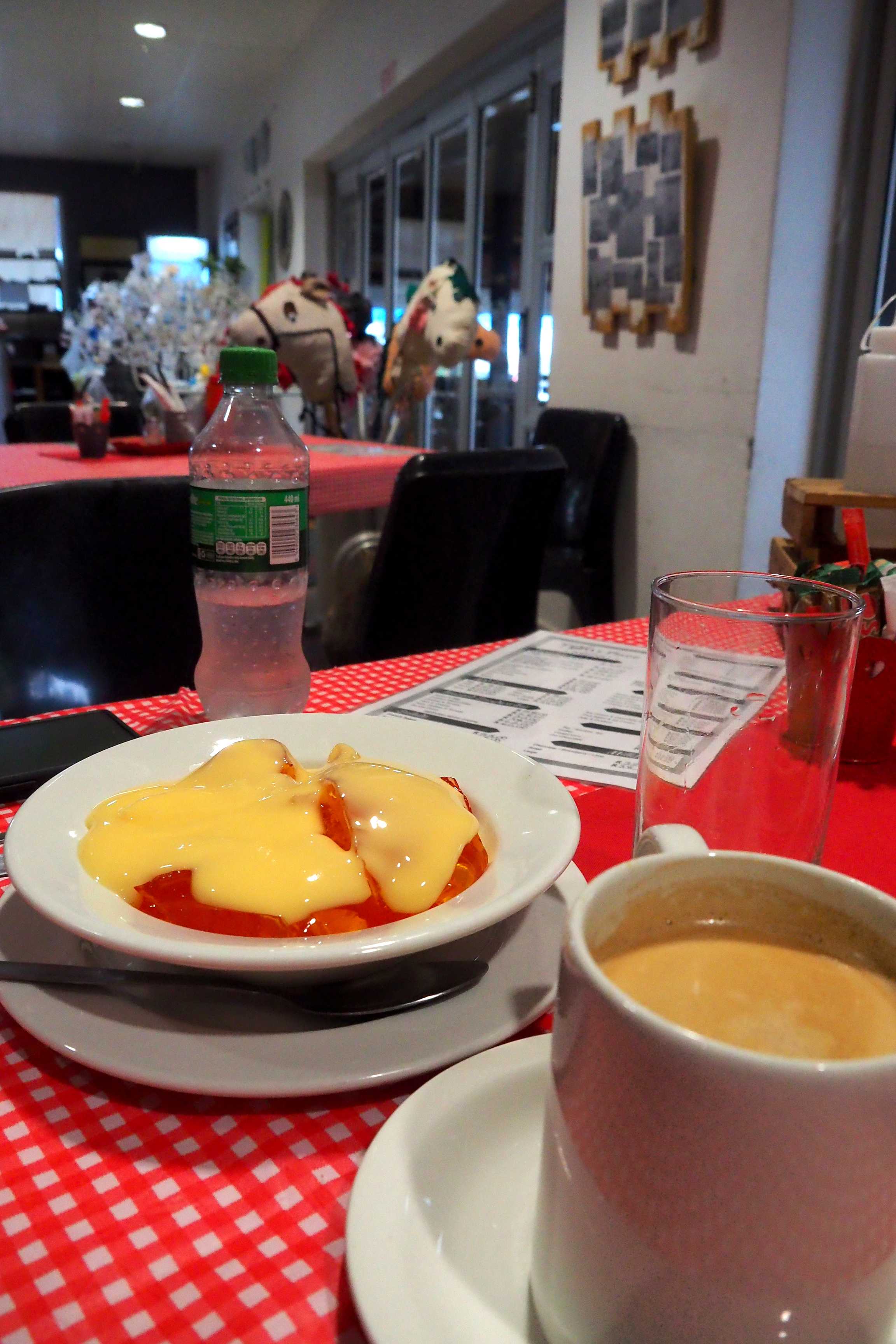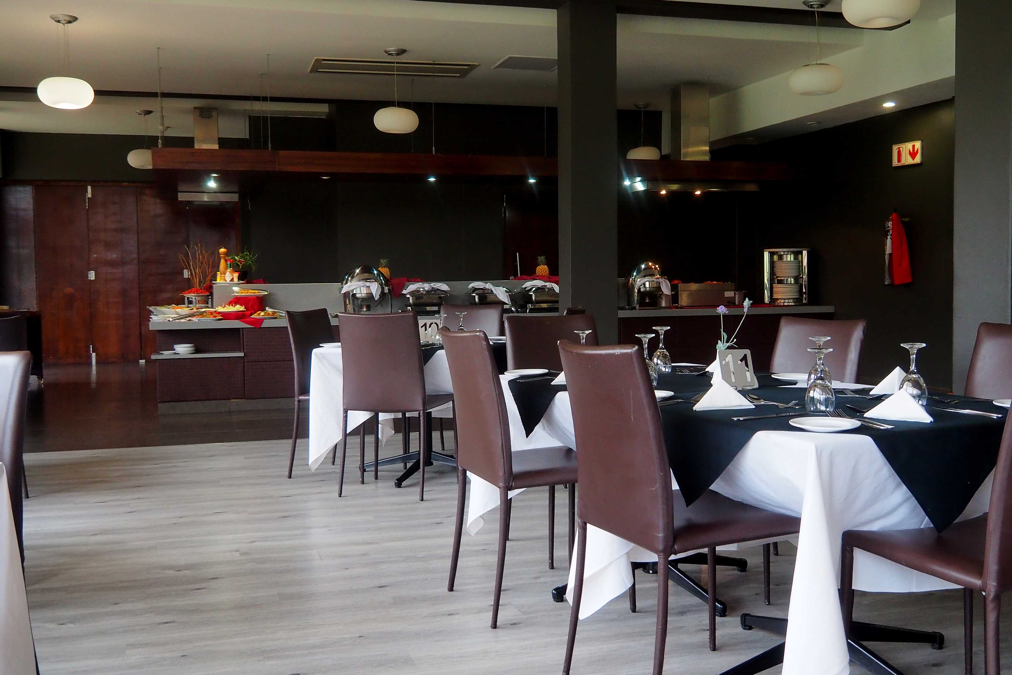 Et hop, nous voici téléportés dans le Golden Gate Hotel and Chalets. Le buffet de la grande salle du restaurant n'attend que nous, le lieu est désertique à l’exception du personnel dévoué qui, malgré le service en libre-service au buffet, reste à notre disposition.