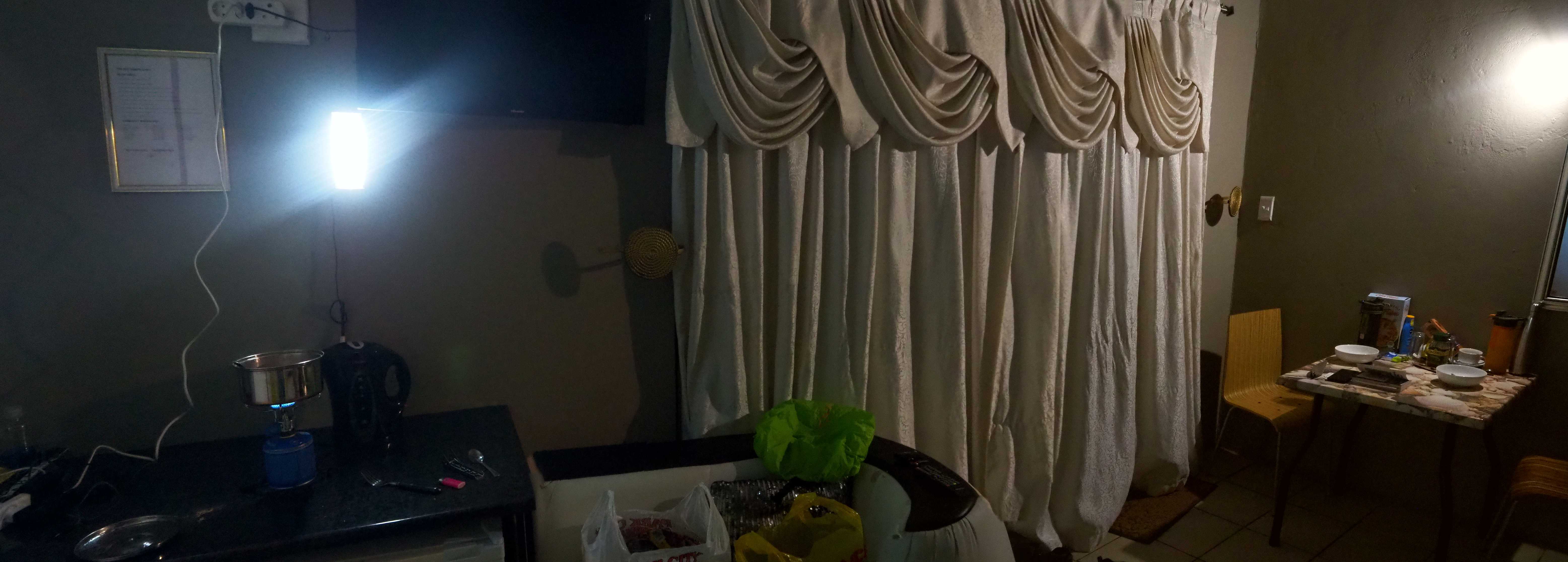 La chambre, où les coupures d'électricité seront fréquentes, c'est un générateur qui alimente tout l'hôtel. Le gérant nous a donné une grosse lampe torche. Pour l'heure, c'est camping à l'hôtel avec notre petite bouteille de gaz !