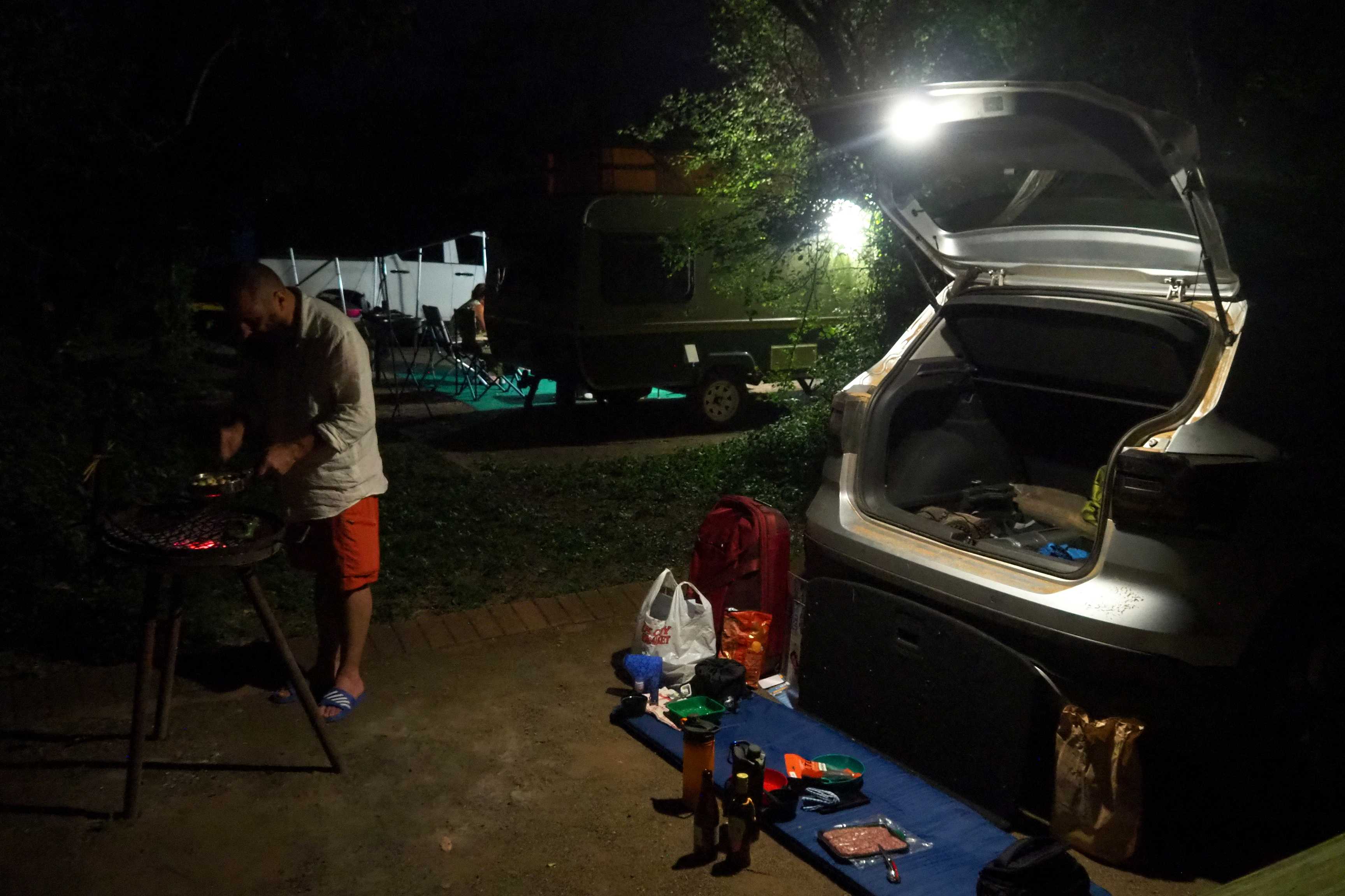 Pique-nique sur le site de Nhlanguleni avec d'abord l'apéro : fruits secs et "biltong" de viande séchée de boeuf.