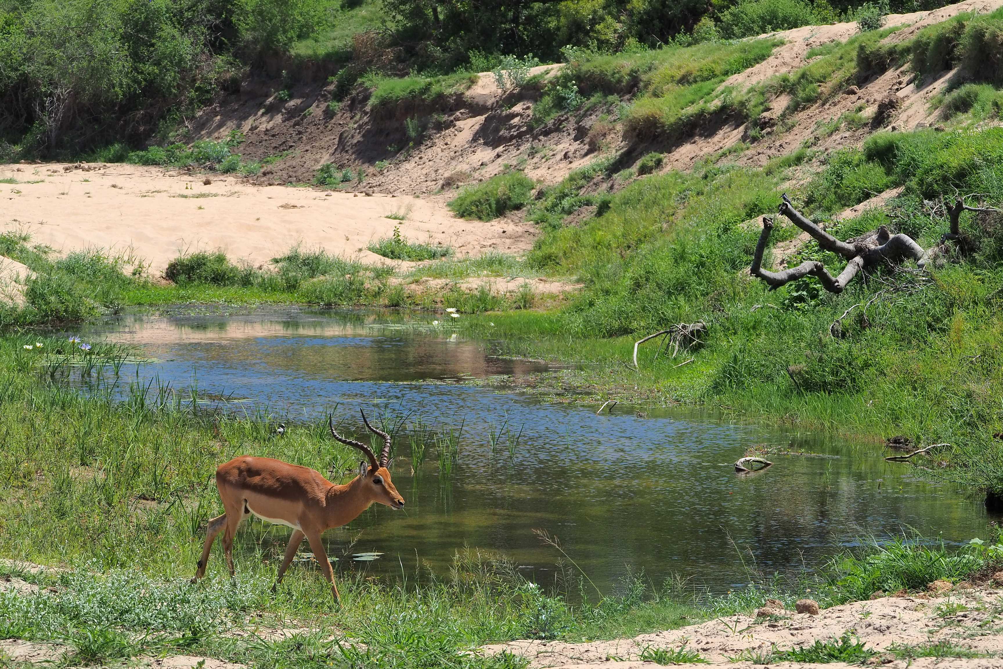 Un autre endroit où on peut sortir de la voiture, avec une vue sur la rivière presque asséchée Timbavati.