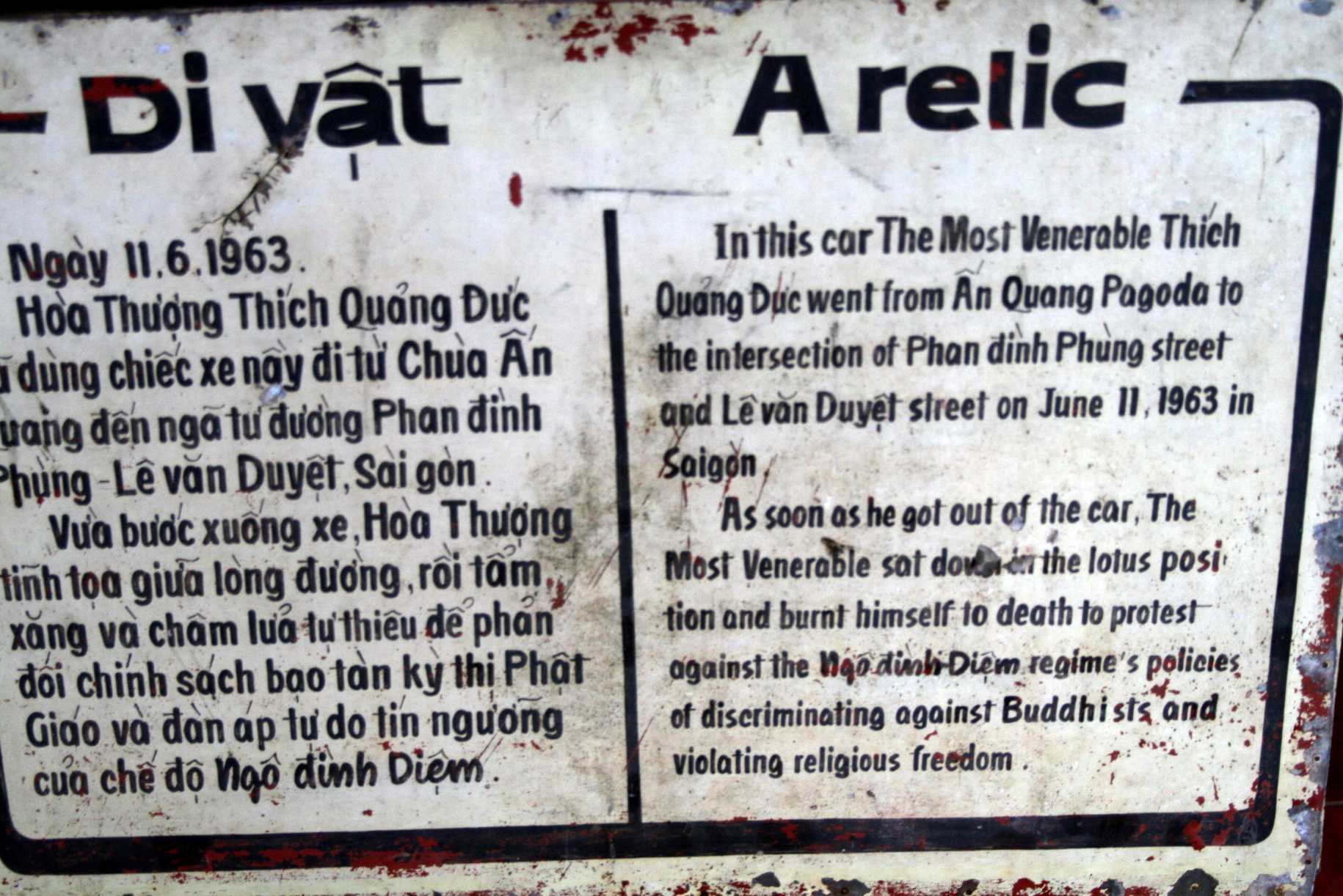 The blue Austin of the sadly famous monk Tich Quang Duc who self-immolated by fire in Saigon on June 11, 1963.