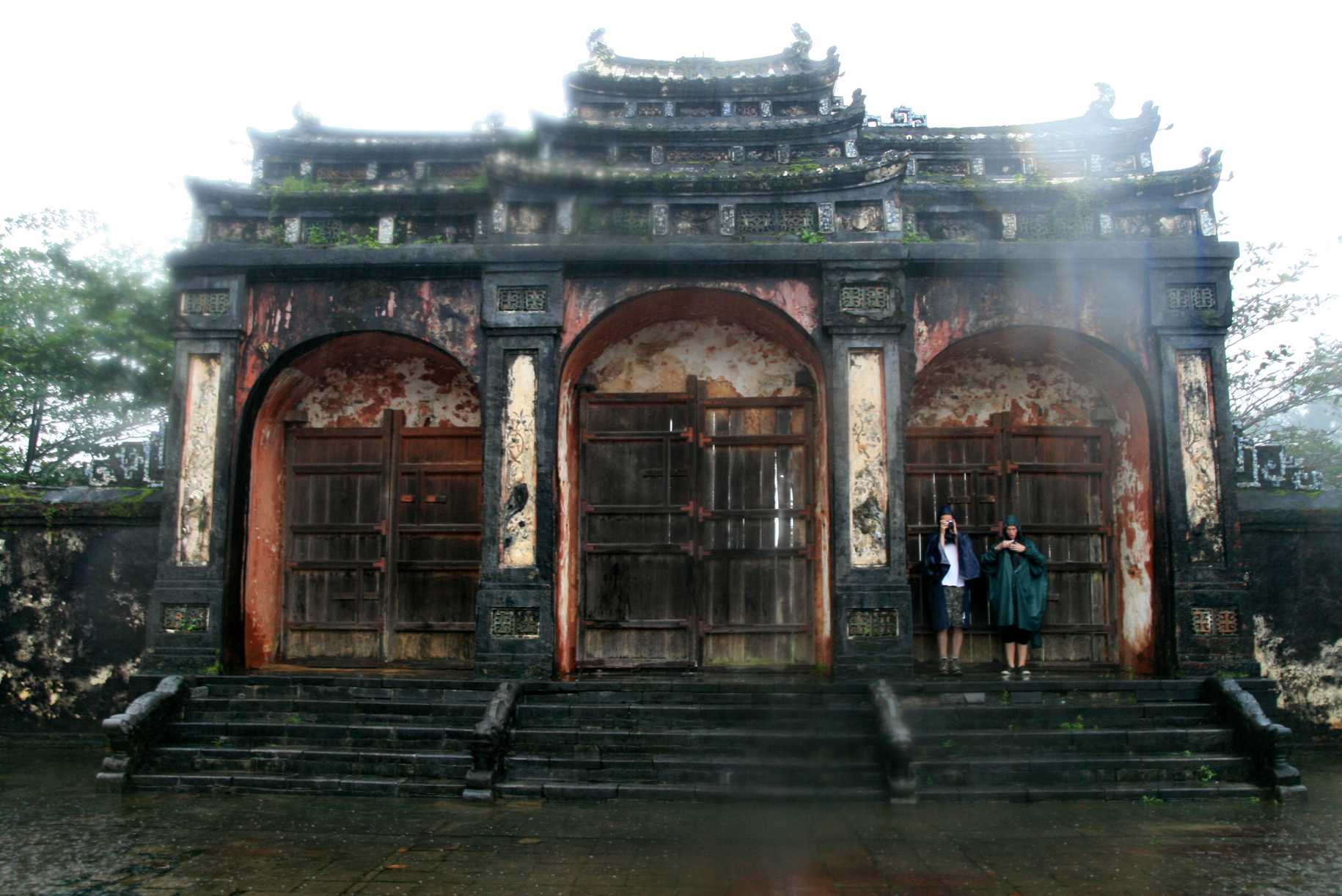 Left photo: the tomb of Emperor Minh Mang (1791-1841. Second emperor of the Nguyen dynasty).