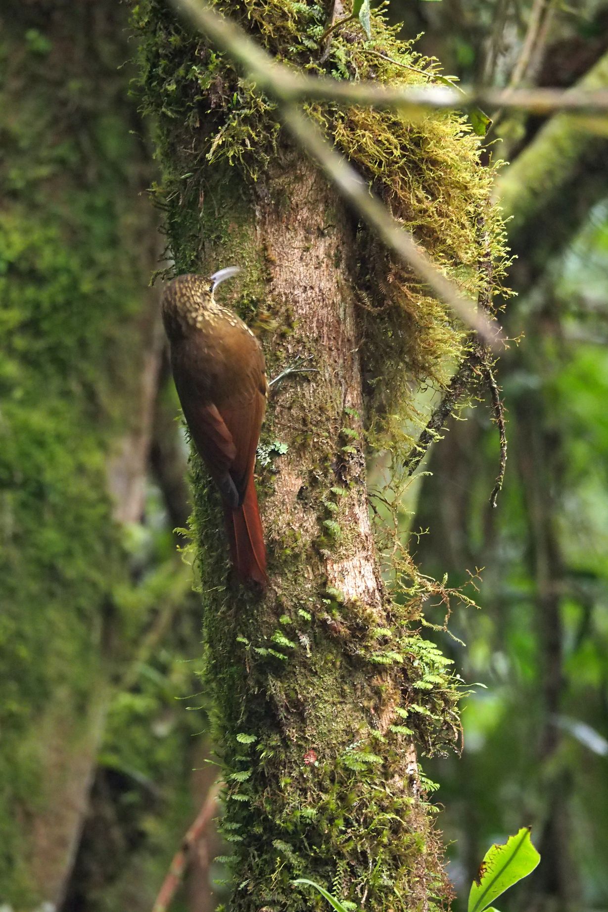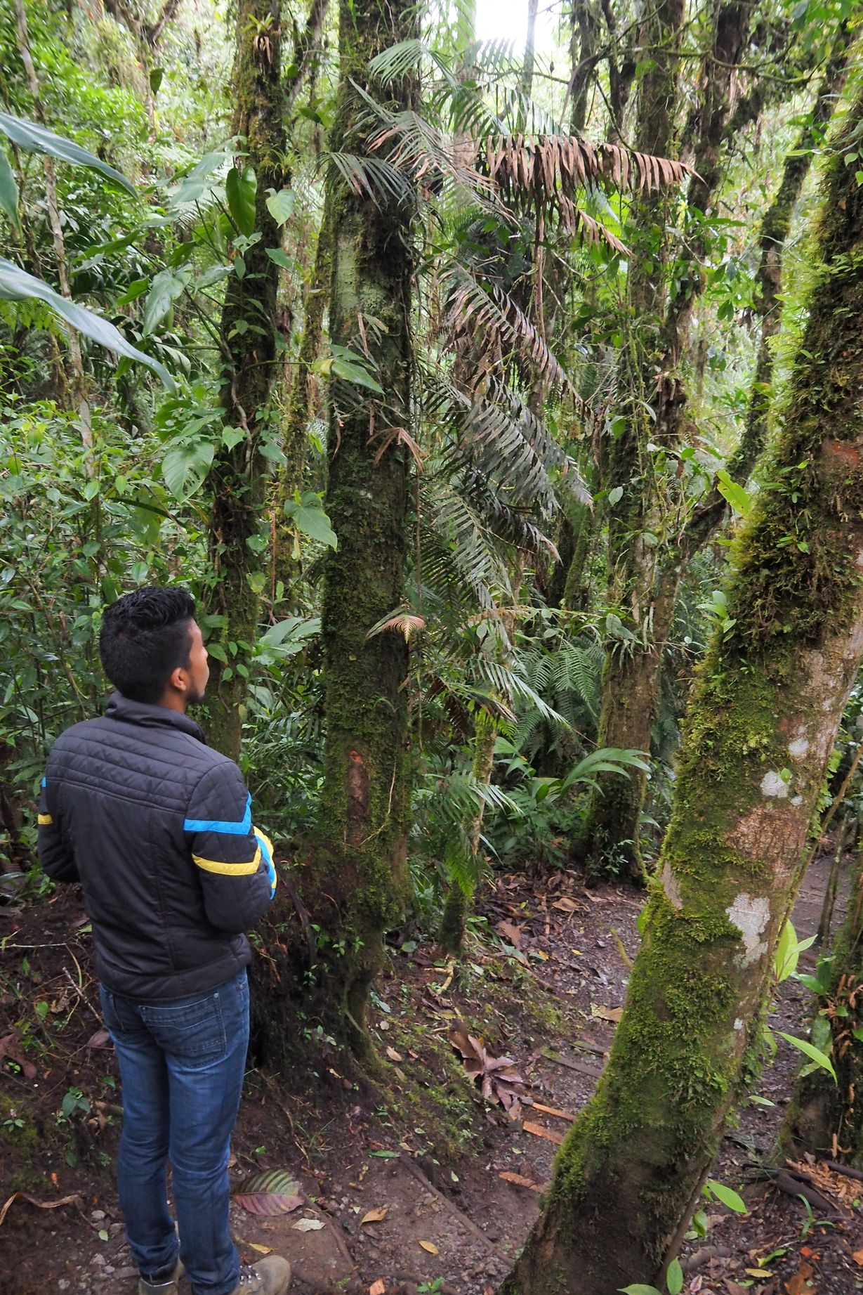 Uno de los guías locales está al acecho, pero nada funciona, las condiciones no son óptimas para que el quetzal salga a pasear por aquí... Pero el paseo por la húmeda selva tropical es, sin embargo, muy agradable.