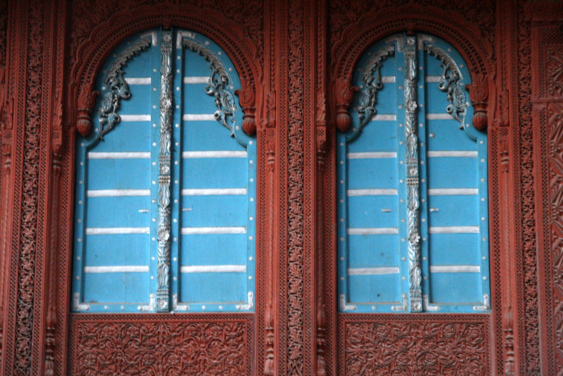 Havelis con fachadas de arenisca roja minuciosamente esculpidas