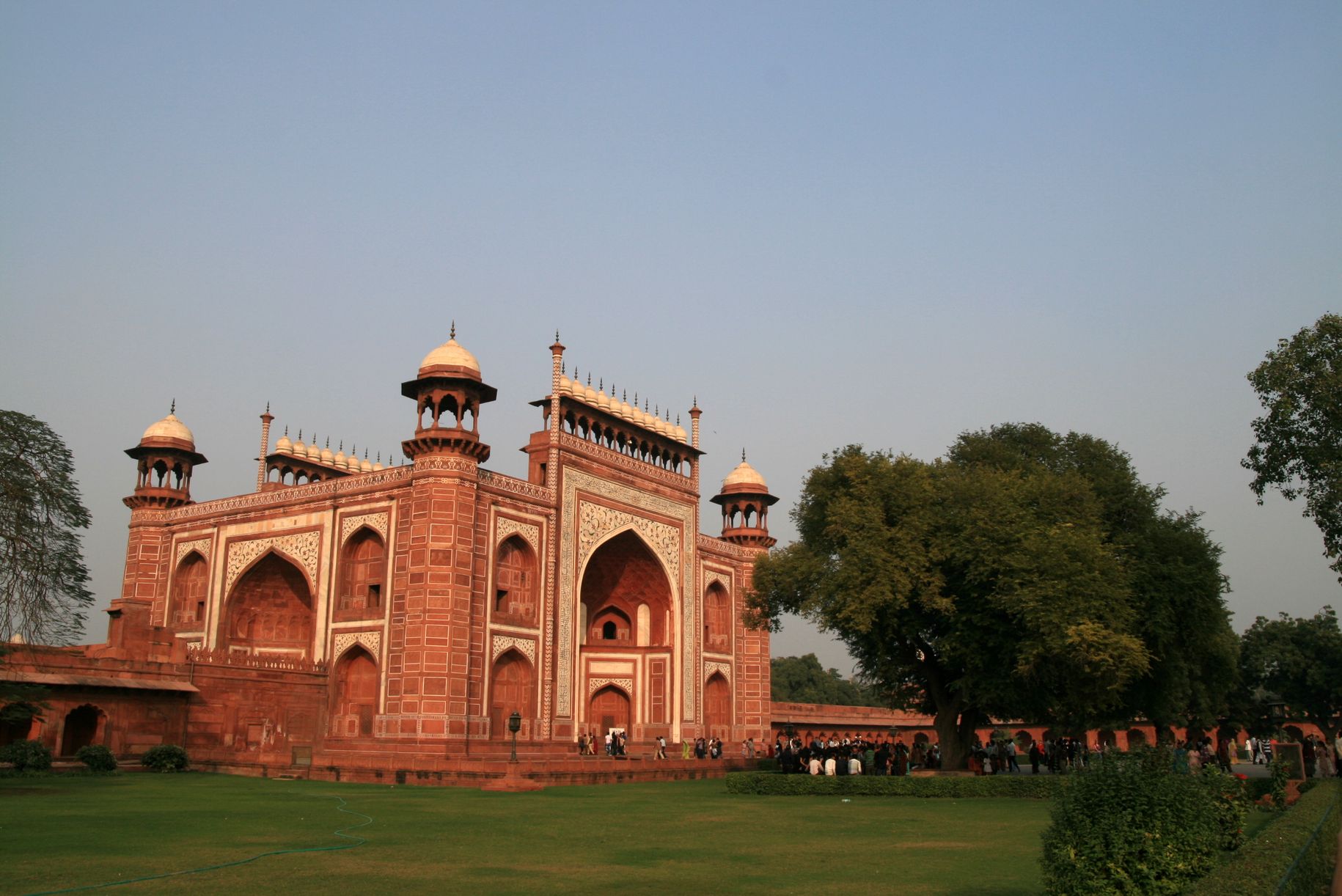 Una vez pasadas las taquillas, el Taj Mahal no se ofrece inmediatamente a sus ojos; primero hay que pasar por la puerta de arenisca roja llamada Darwaza.