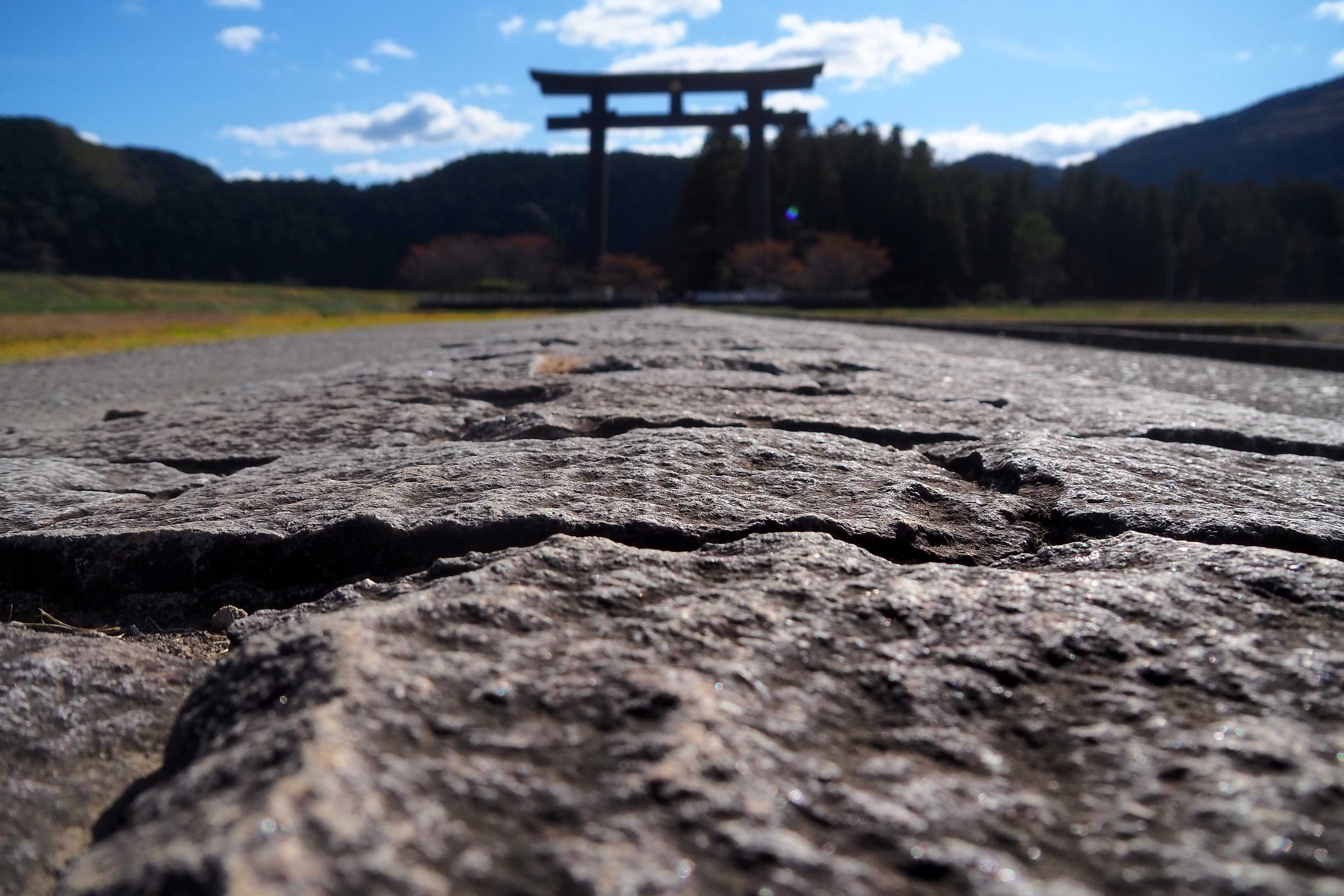 El acceso al templo pasa por una puerta y su enorme cuerda de paja de arroz trenzada, el shimenawa.