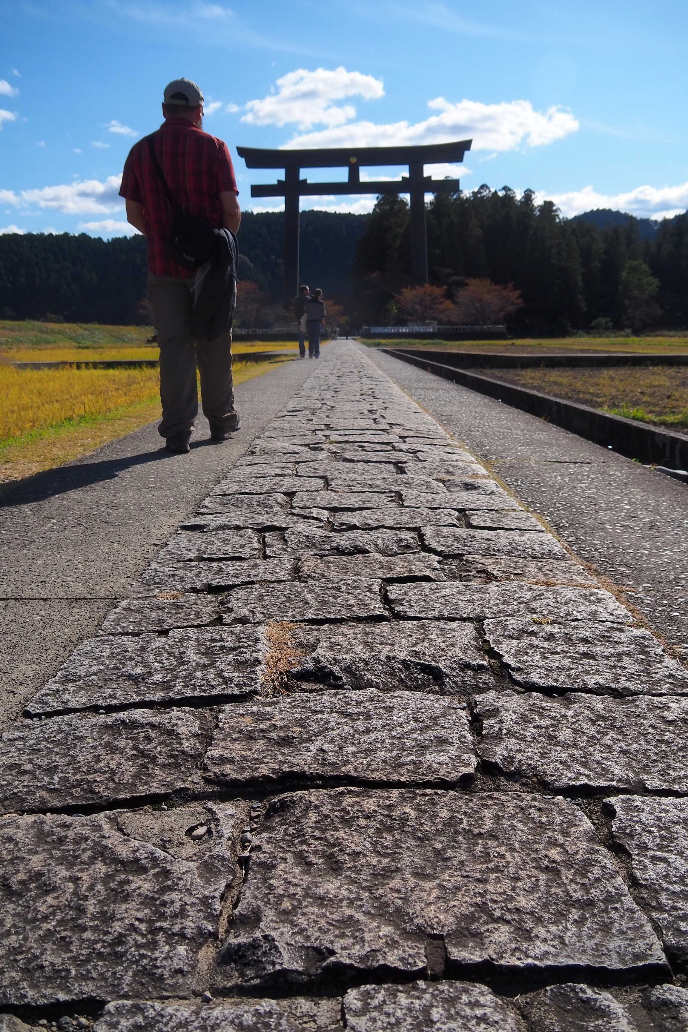 Aquí estamos ahora en Tanabe, frente a un "torii". Estas especies de "pórticos", generalmente de madera, indican la entrada a un lugar sagrado, a menudo sintoísta. Aquí, estamos en el santuario Hongu Taisha, uno de los tres imprescindibles del "Kumano Kodo".