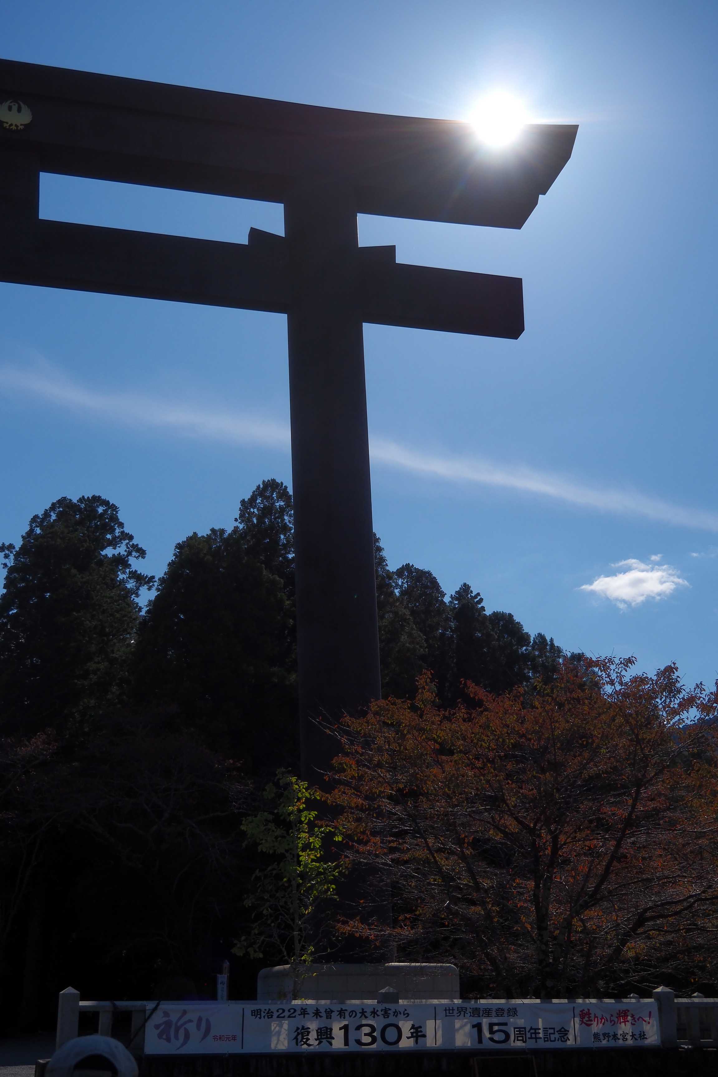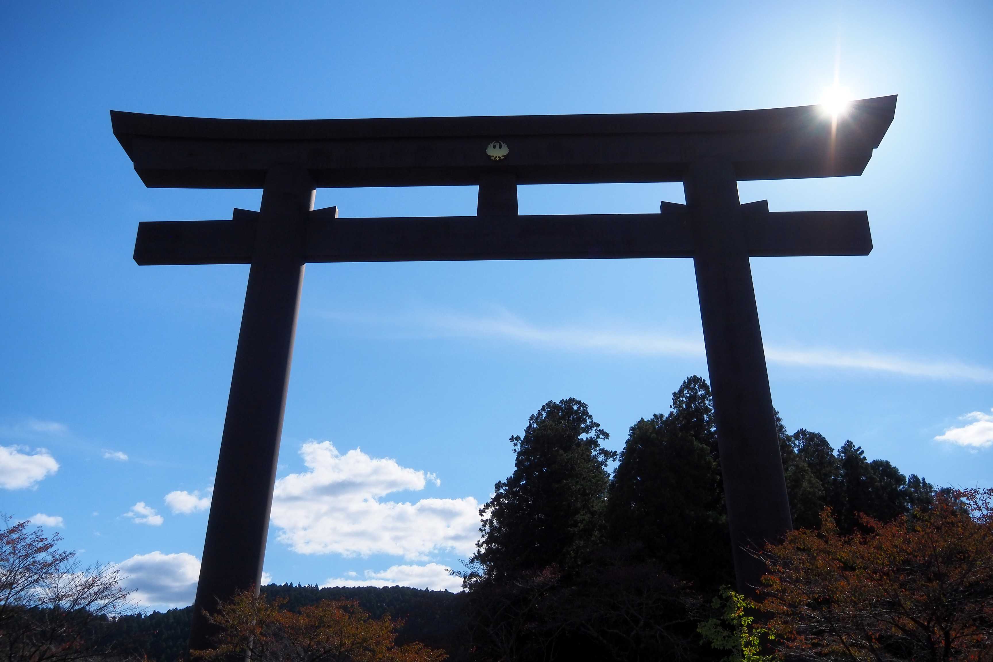 El Torii, construido en el año 2000, es el más grande del mundo. Fue colocado en el lugar del antiguo santuario de Ōyunohara, destruido por inundaciones en 1889.