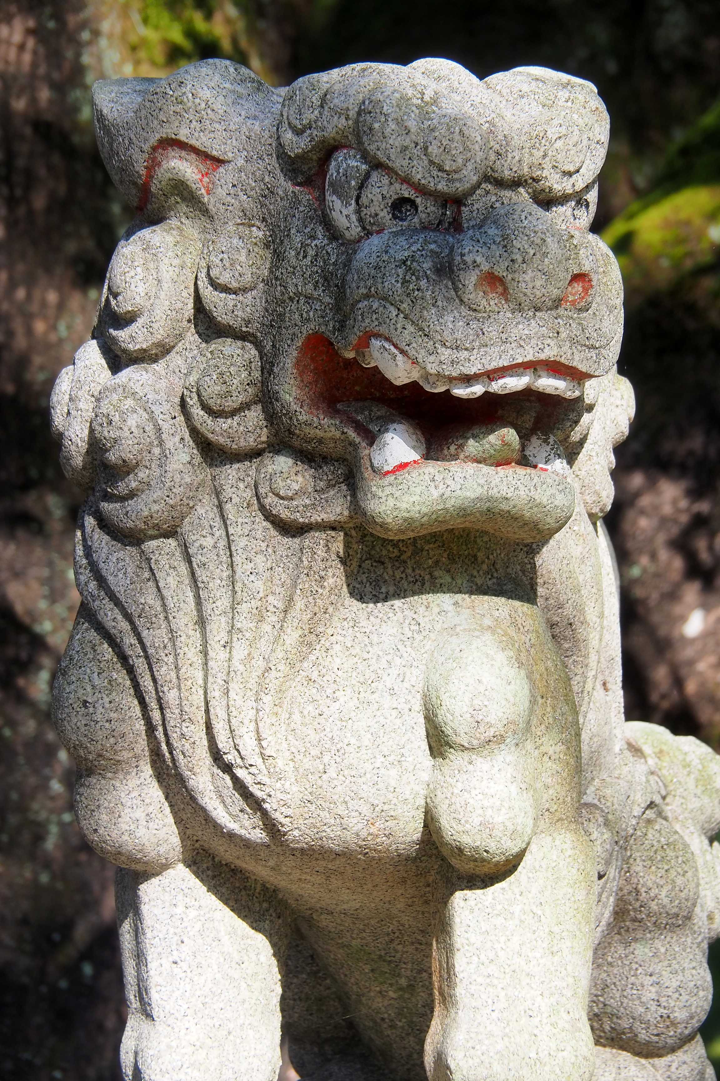 Este santuario sintoísta está dedicado al Dios de la naturaleza, Hayatama no Okami, custodiado, entre otras cosas, por este pequeño dragón y la enorme cuerda shimenawa bajo la cual hay que pasar para entrar al recinto.