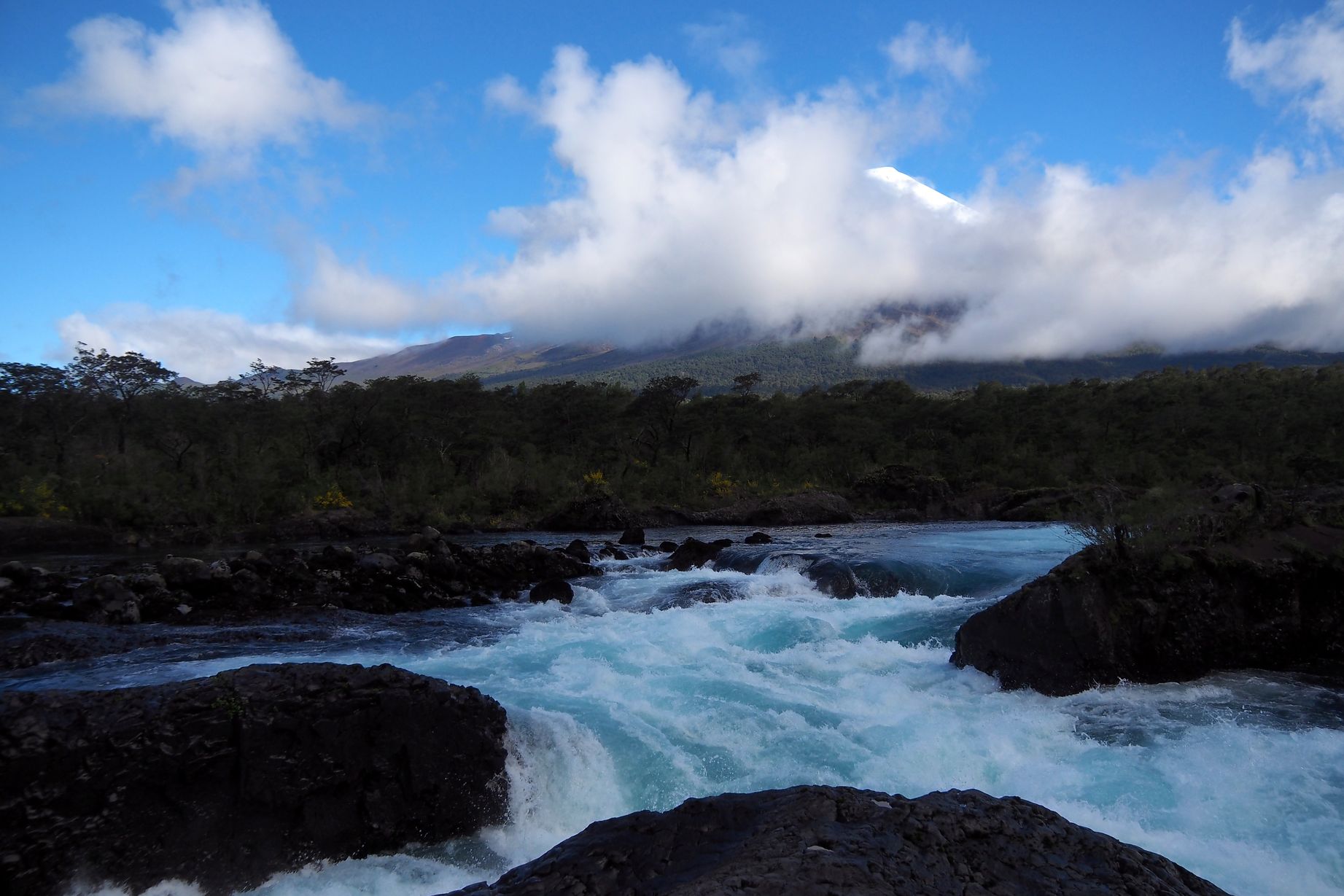 El volcán Villarrica desde Los Tres Saltos de Huepil
