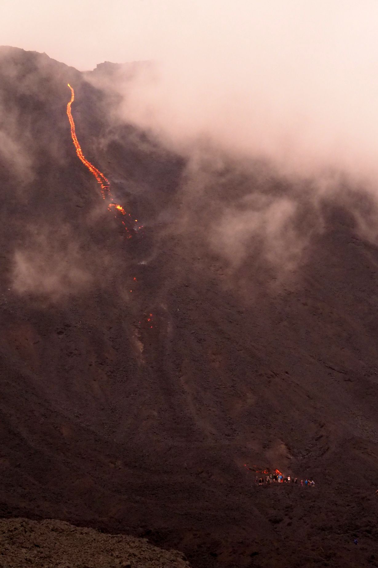El volcán de Fuego en erupción visto desde la Nariz del Indio