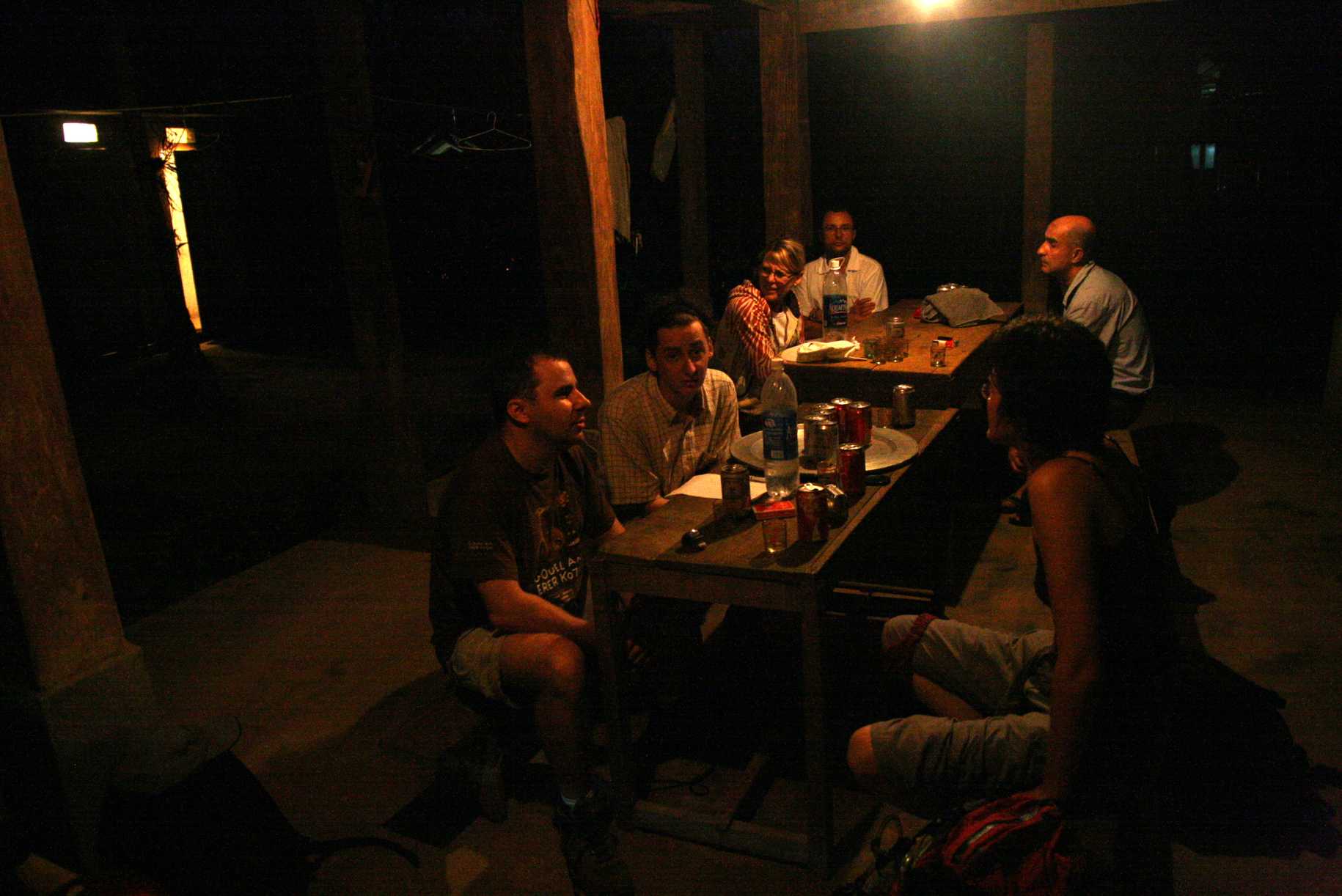 Foto de la derecha: dormimos los 13 en la misma habitación bajo mosquiteras instaladas justo antes de ir a dormir.