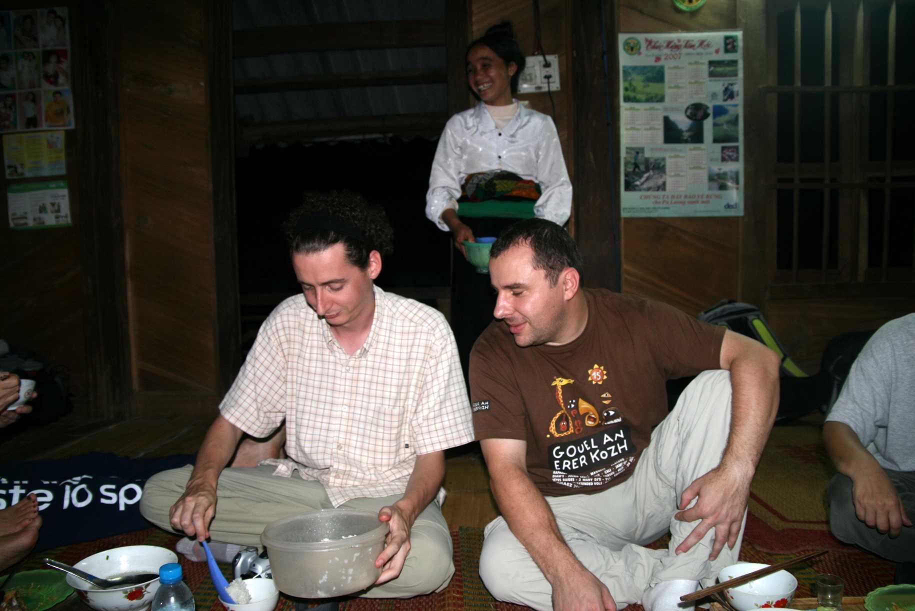 Bajo la casa sobre pilotes, nos refrescamos antes de tomar una "buena" ducha de agua fría (y no, nada de agua caliente allí)!