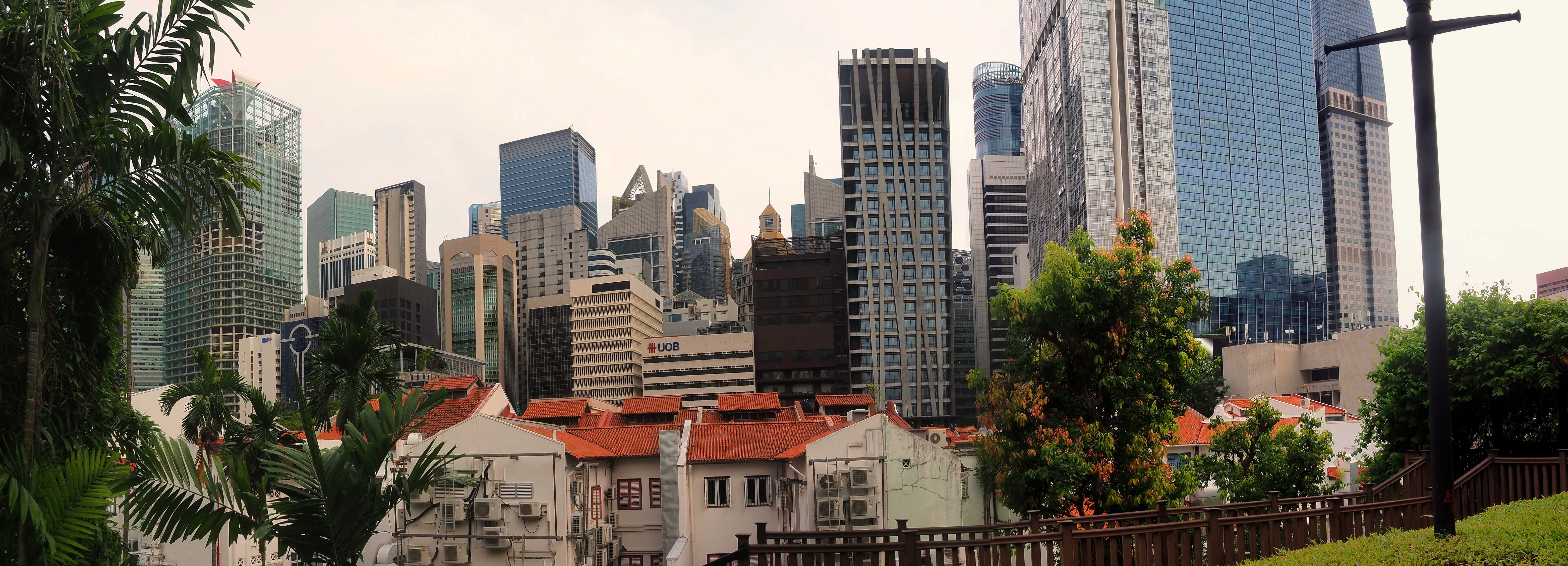 Vue sur les shophouses de Chinatown et le quartier financier depuis Ann Siang Hill Park.
