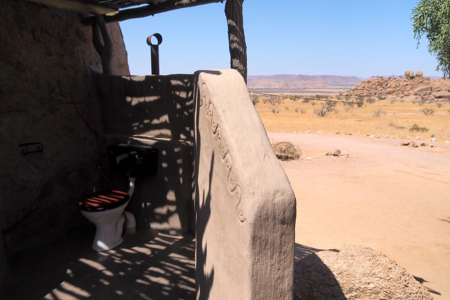 Après 2 heures de piste, nous voilà rendu dans notre nouveau camping du jour, le Mowani mountain campsite. Il est impeccablement situé, dans les rochers de la montagne, avec une vue complètement dégagée sur la superbe savane.